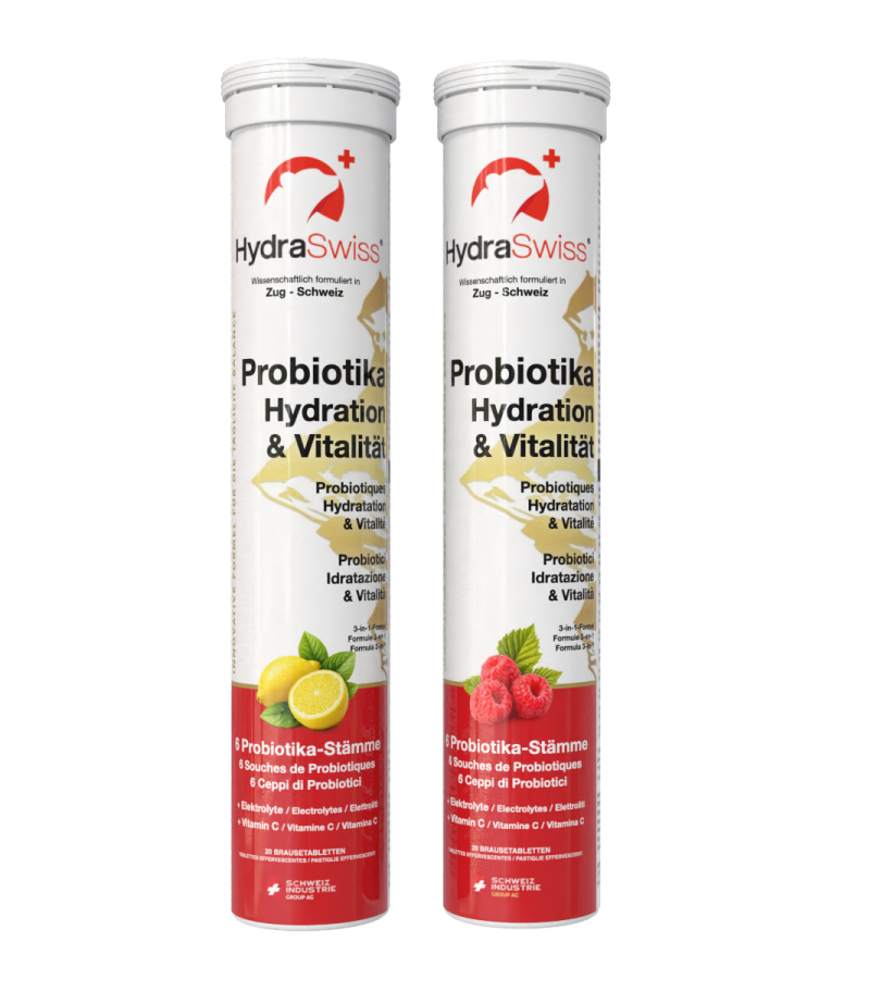 HYDRASWISS pionnier du probiotique effervescent crée la première formule en tablettes effervescentes qui associe 6 souches probiotiques (6 milliards de CFU), électrolytes essentiels et vitamine C.